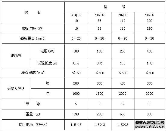 感应交声光验电器是一种携带方便、重量轻、验电方便的新型验电器。验电器适用于额定频率为50HZ,电压等级为10KV、20KV、35KV、110KV、220KV、500KV作直接接触式或非接触式验电用。验电器适用于发电、输电、变电系统和工矿企业的电器操作检修人员用于验证有无电压的理想**工具使用环境温度为-25-55;相对湿度为20%~96%,使用场合为户内和户外良好天气.指示器工作电源为四节SR44(AG13)纽扣电池,静态电<=10Ua,测电寿命>=5000次.